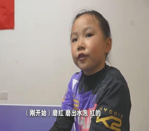陳思楊訓(xùn)練刻苦,她的小手滿是繭子?!皠傞_(kāi)始磨紅,磨出水泡,紅的,后來(lái)就不疼了?!标愃紬畋硎尽_@位小女孩非常自律,每天的時(shí)間安排得滿滿的,吃飯時(shí)間都不能拖拉。陳思楊的文化課學(xué)習(xí)也不差,在2023-24學(xué)期,她獲得了數(shù)學(xué)之星的獎(jiǎng)狀。