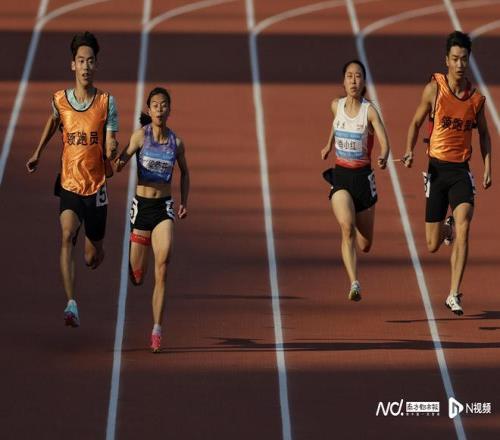 女子100米T36級(jí)決賽,湖南運(yùn)動(dòng)員史逸婷首先沖過終點(diǎn)。