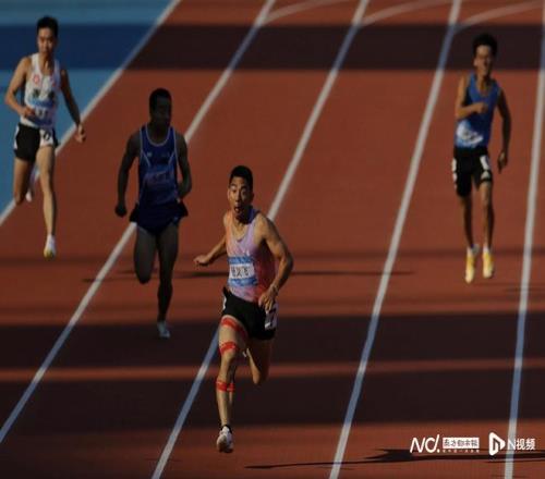 男子100米T36級(jí)決賽,廣東一團(tuán)運(yùn)動(dòng)員楊義飛奪冠。