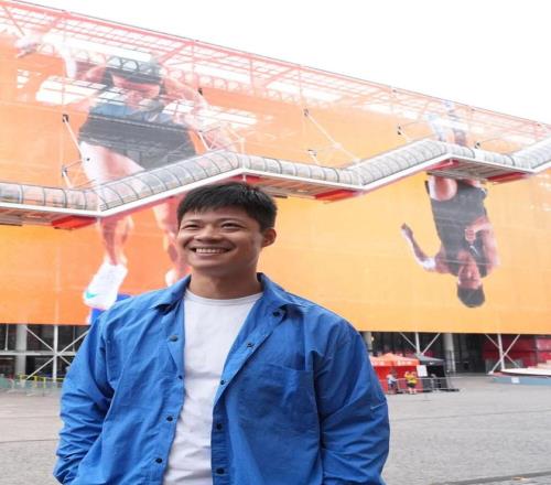 2024年7月27日,蘇炳添在巴黎奧運會期間于巴黎蓬皮杜藝術(shù)中心外留影。新華社記者 孟永民 攝