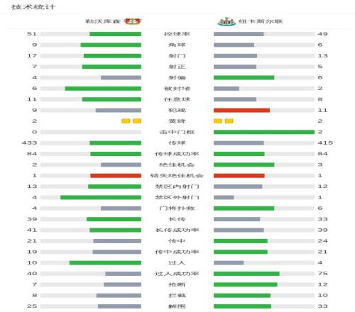 勒沃庫(kù)森22紐卡,戈登傳射,吉馬良斯烏龍,米利、格里馬爾多破門