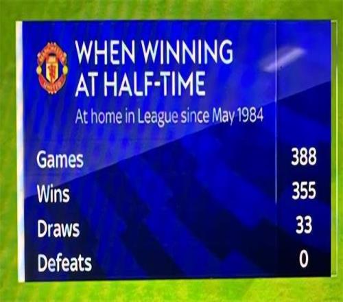 英超歷史上,坐鎮(zhèn)主場的曼聯(lián)若是半場領(lǐng)先,最終都能保持不敗。曼聯(lián)上次在聯(lián)賽主場半場領(lǐng)先,最終還輸球,得追溯到1984年5月。最近41年,曼聯(lián)在主場的聯(lián)賽半場領(lǐng)先時,389戰(zhàn)355勝34平0負。若沒有拉門斯的壓哨2連撲,曼聯(lián)這項輝煌的紀錄將成為歷史……