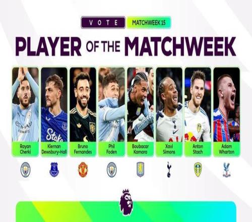 北京時(shí)間12月9日,英超官方公布了聯(lián)賽第15輪最佳球員候選名單,這8名球員為謝爾基、霍爾、布魯諾-費(fèi)爾南德斯、福登、卡馬拉、哈維-西蒙斯、施塔赫、亞當(dāng)-沃頓。